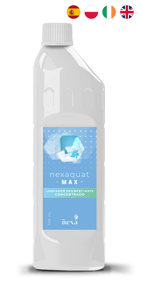 Producto desinfectante concentrado que combina una mezcla de amonios cuaternarios como ingredientes activos con un amplio espectro de actividad adecuado para la desinfección de áreas críticas como áreas institucionales, atención médica y hospitales.